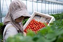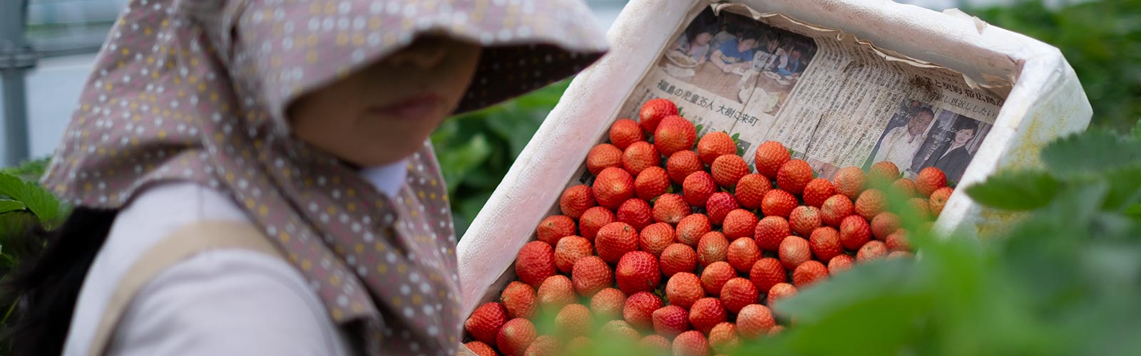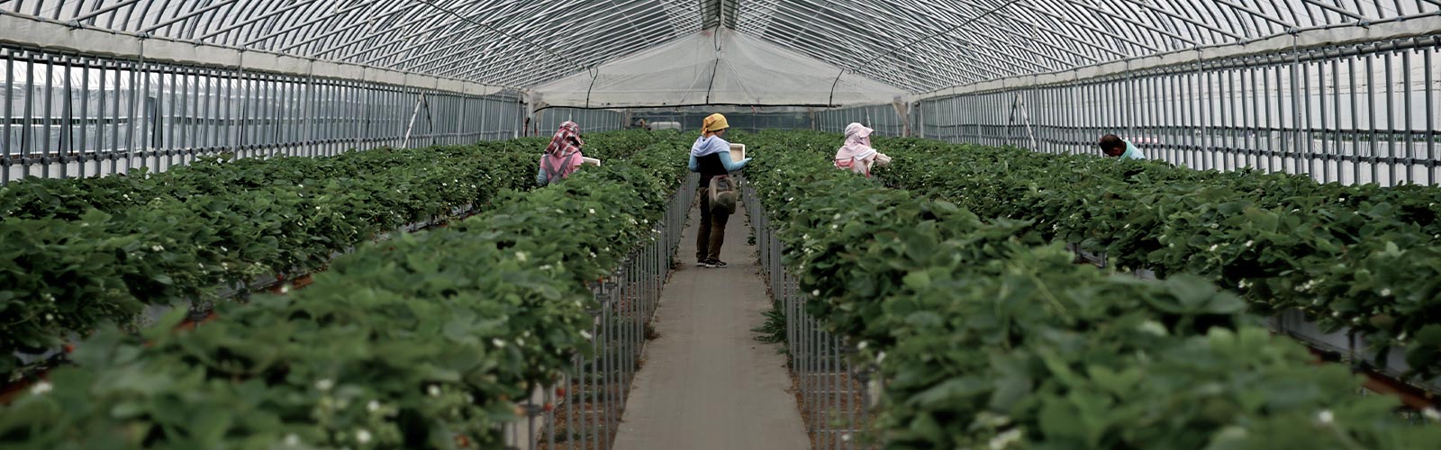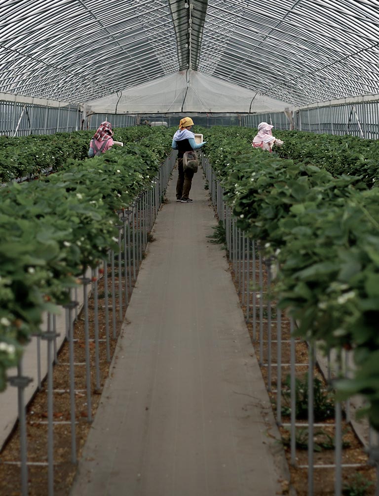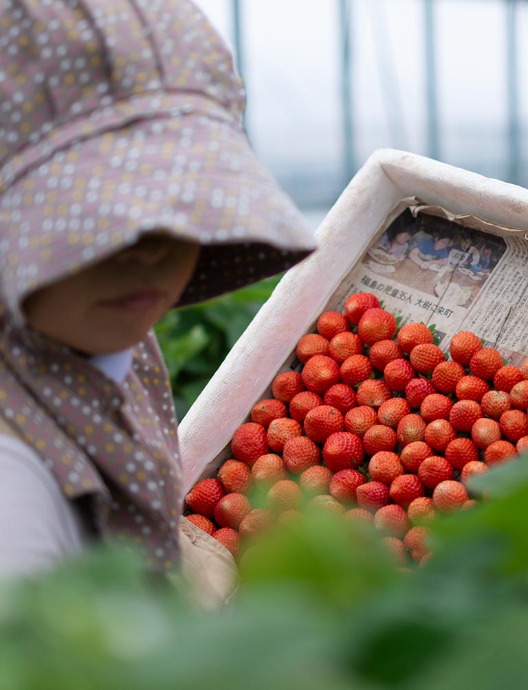 約5000平方メートルの農地で夏秋イチゴを栽培。品種は、粒が大きく酸味と甘味のバランスが絶妙な「赤い妖精」と、あかね色のイチゴを鈴のように実らせる「すずあかね」を生産出荷しています。