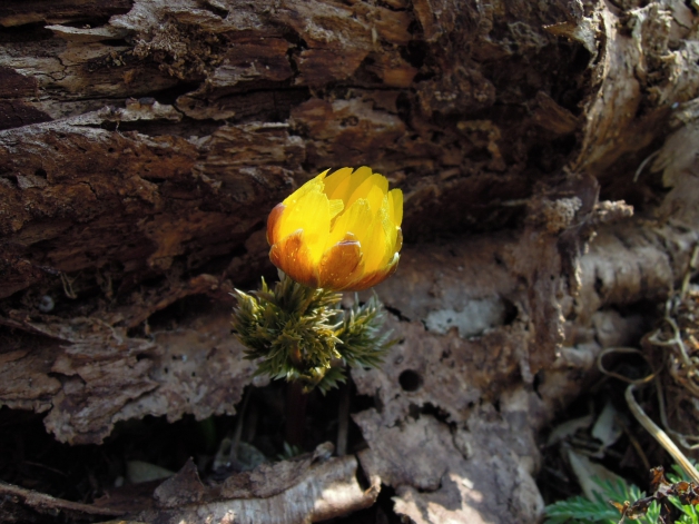 まだ茶色い景色の中に、ふわっと明るい黄金色。
