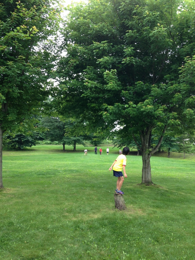 立つとゴール見えちゃうので、屈んで挑戦しました