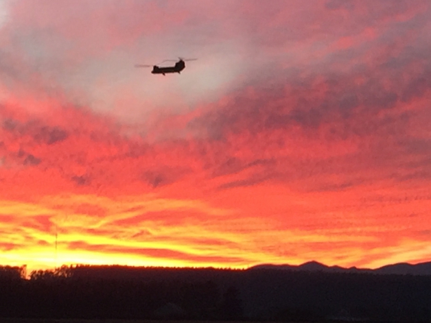 すっかり秋色に染まった空にヘリコプターが飛んでました。