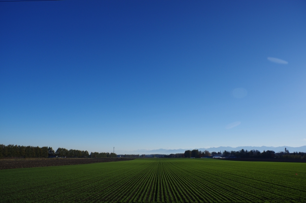 秋らしく晴れて澄んだ青空に、秋撒きの小麦の緑が映えてキレイでした。