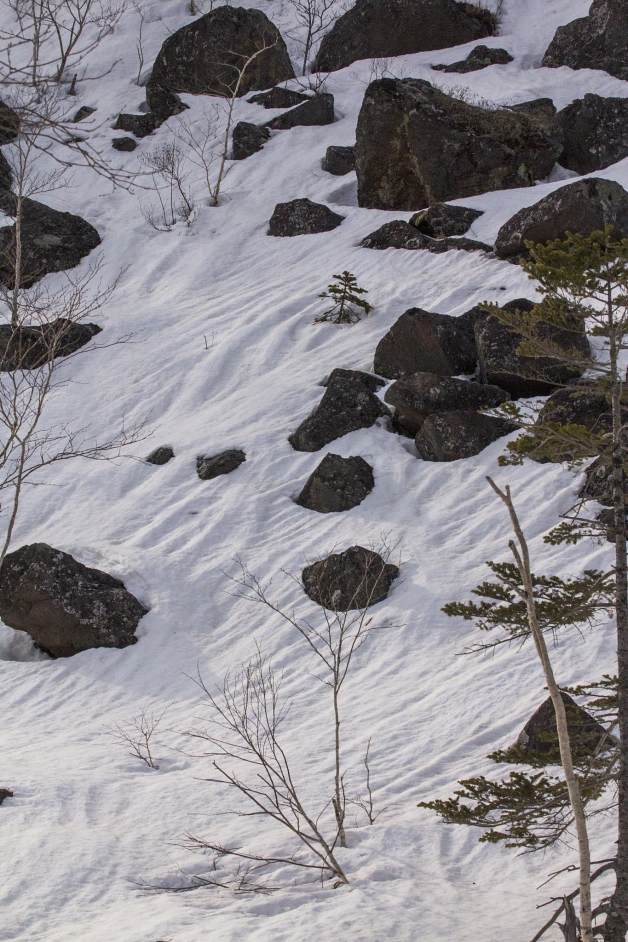 雪が風に吹かれて溶けていく。春だけの風景。自然が作り上げた、京都のお寺にも引けを取らない表現力です。
