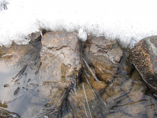 橋から見下ろした然別川に積もる雪の造形が美しくも面白く写し取りました。